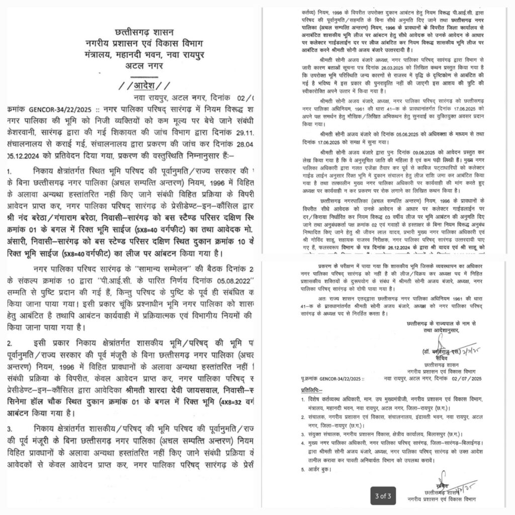 नगर पालिका अध्यक्ष को राज्य शासन ने किया बर्खास्त
