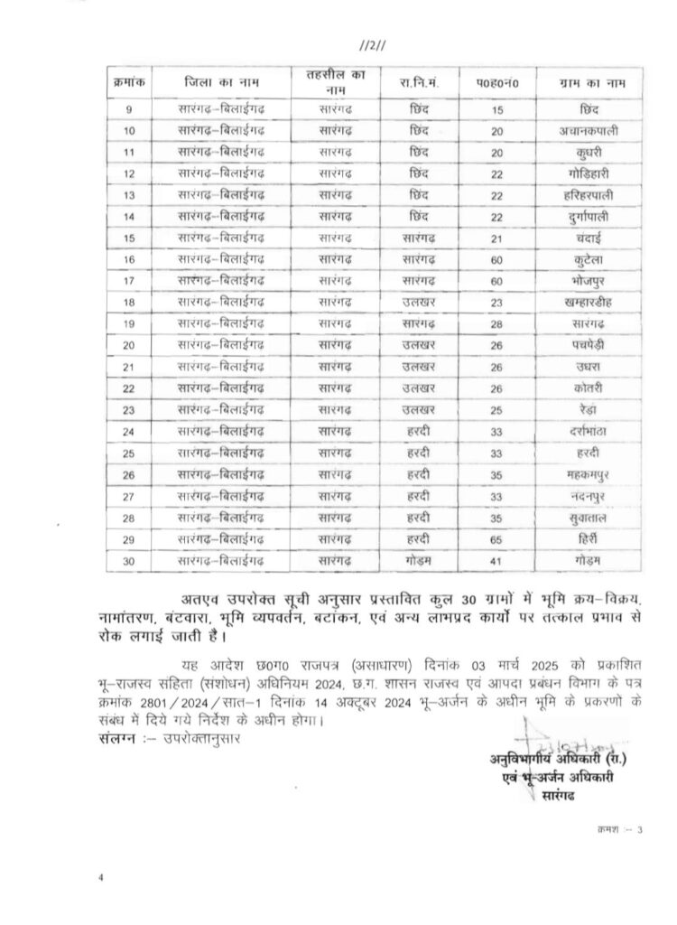 प्रशासन द्वारा जारी आदेश के अनुसार इन सभी गांवों में भूमि क्रय-विक्रय, नामांतरण, विभाजन, भू-ऋण, नक़्शा पास करना या किसी भी प्रकार का लाभ प्राप्त करने संबंधी कार्यों पर तत्काल प्रभाव से रोक लगा दी गई है।
