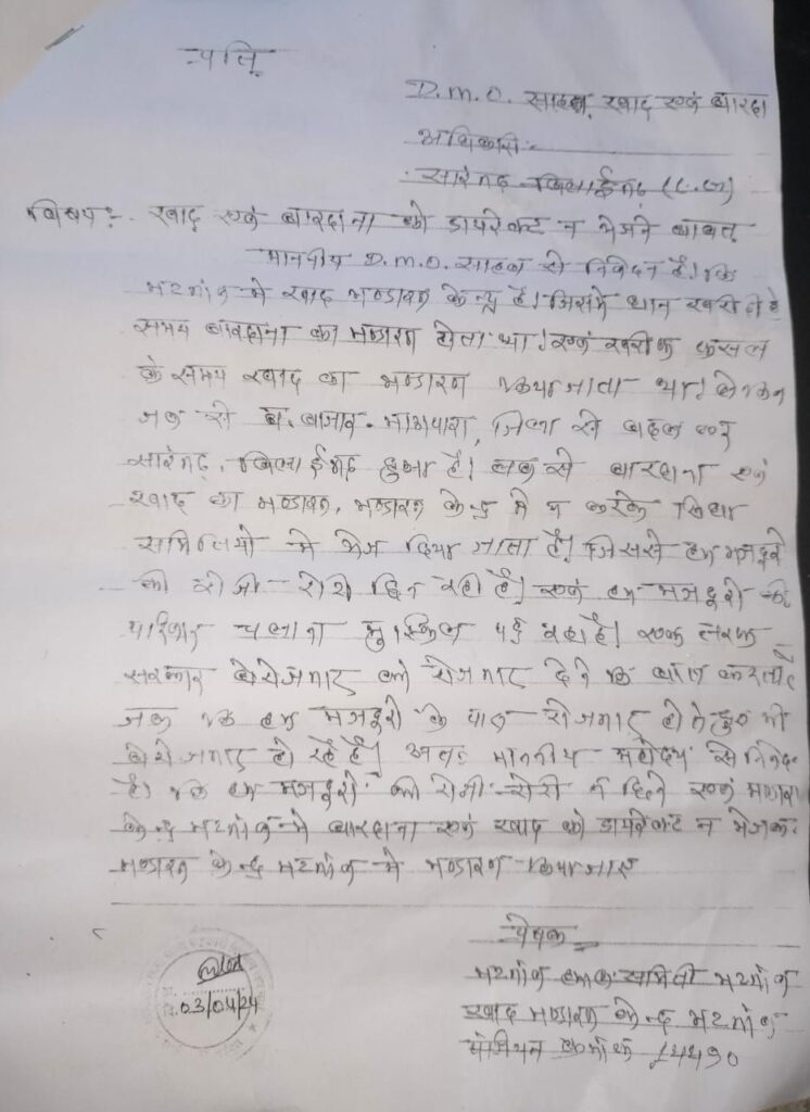 दरअसल खाद भंडारण केंद्र के अधिकारी खाद को सीधे समितियों में भेज दे रहे है। और हमालों को काम नही मिल पा रहे है। हमालों की मांग है कि खाद एवं बरदाने को सीधा सोसाइटी में ना भेज कर भंडारण केंद्र में भेजे ताकि हमालो को काम मिल सके । जानकारी के मुताबिक खाद का भंडारण पहले भंडारण केंद्र भंडारण होना है। उसके पश्चात समितियों में अभी तक खाद भेजे जाते है। लेकिन अधिकारी लोग सीधे समितियों में भेजने का काम कर रहे है। ऐसे में खाद को सीधे समितियों में भेजा जाना कही ना कही अधिकारियों की भूमिका पर भी सवाल खड़ा होना लाजमी है। और इस पर जांच भी होनी चाहिए ।