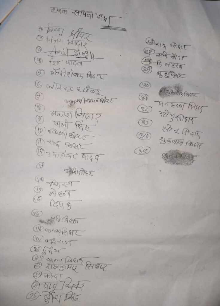 ज्ञापन सौंपने वालों हमालों में बिल्लू धीवर, विजय सिदार, अमित सिंह , शिव यादव , राजकुमार सिदार, गौरीशंकर सिदार, बिहारी धीवर, उमाशंकर यादव , रामू सिदार, बली सिंह , लाखन धीवर, मोहन , दीपक, कनकु सिदार, खन्ना सिदार, पप्पू धीवर, दुर्गेश सिंह सोनू सिदार सहित आदि लोग सामिल है।