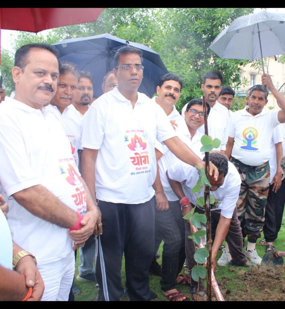 सारंगढ़-बिलाईगढ़, 21 जून 2025/अंतरराष्ट्रीय योग दिवस पर बारिश के दौरान कलेक्टर कार्यालय परिसर सारंगढ़ में मुख्य अतिथि लोकसभा रायगढ़ के सांसद राधेश्याम राठिया सहित जिला पंचायत अध्यक्ष संजय भूषण पांडेय, कलेक्टर डॉ संजय कन्नौजे, पुलिस अधीक्षक आञ्जनेय वार्ष्णेय, एसडीएम प्रखर चंद्राकर सहित ज्योति पटेल, शिवकुमारी चौहान, मनोज जायसवाल आदि ने भीगते हुए पौधारोपण किया। इस अवसर पर दिनेश जांगड़े, अजेश अग्रवाल, दीनानाथ खूंटे, प्रहलाद आदित्य, विकास टंडन, अन्य जनप्रतिनिधि, वन विभाग के अधिकारी कर्मचारी उपस्थित थे।