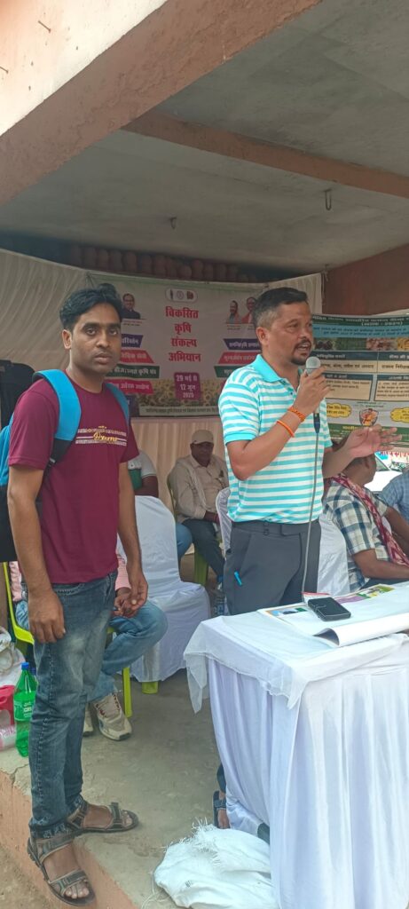 आज दिनाँक 06 जून 2025 को विकसित कृषि संकल्प अभियान अंतर्गत ग्राम लेन्धरा में शिविर का आयोजन किया गया। जिसमें क्षेत्र के लगभग 300 कृषकों की उपस्थिति में कृषि व कृषि से सम्बद्ध विभाग द्वारा नवीन बैज्ञानिक पद्धति से किसानों को खेती के नये तकनीकों की जनकारी दी गई। जिसमें मुख्य रूप से कृषि महाविद्यालय बोईरदादर रायगढ़ से आये हुए सहायक प्राध्यापक डॉ बृजेश पटेल के द्वारा समन्वित कृषि प्रणाली के संबंध में कृषको को जानकारी दी गई। पशुपालन विभाग की ओर से डॉ सुनील जोल्हे द्वारा विभागीय योजनाओं के साथ साथ पशुओं के लिए पौष्टिक चारे का प्रबंधन कृषक घर पर ही कैसे करें के संबंध में महत्त्वपूर्ण जानकारी दी गई। उद्यान विभाग की ओर से श्री बिहारी लाल पैंकरा द्वारा योजनाओं की जानकारी के साथ साथ बाड़ी विकास करके कैसे घर पर ही उन्नत किस्म के फलदार वृक्ष तैयार कर आय कैसे अर्जित किया जाय उस पर विस्तृत जानकारी दिया गया। कृषि विभाग की ओर से श्री जयप्रकाश गुप्ता (कृषि विकास अधिकारी) के द्वारा जैविक खेती पर विस्तृत परिचर्चा की गई तथा जैविक खाद बनाने की विधि से किसानों को अवगत करवाया गया। सेवा सहकारी समिति के प्रबंधक श्री शैलेश चंद्रा द्वारा समिति में भंडारित खाद व बीज का अग्रिम उठाव के सी सी के माध्यम से करने की अपील किसान भाइयों से की गई। विकासखंड के प्रभारी वरिष्ठ कृषि विकास अधिकारी श्री डी के बंजारे द्वारा विभागीय योजनाओं यथा पी एम किसान सम्मान निधि योजना, किसान समृद्धि योजना, फसल चक्र परिवर्तन, मेड़ पर अरहर, आदि बिंदुओं पर जानकारी दी गई।क्षेत्रीय ग्रामीण कृषि विस्तार अधिकारी श्री देवेश किशोर कानूनगो द्वारा 200 किसानों को आदान सामग्री ( मिक्रोन्यूट्रेंट) 15 किसानों को सॉइल हेल्थ कार्ड का वितरण कराया गया।